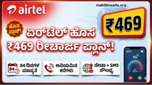 Airtel Recharge Plan: ಏರ್ಟೆಲ್ ಹೊಸ ₹469 ರೀಚಾರ್ಜ್ ಪ್ಲಾನ್! 84 ದಿನಗಳ ಮಾನ್ಯತೆ, ಅನಿಯಮಿತ ಕರೆಗಳು! ಇಲ್ಲಿದೆ ಮಾಹಿತಿ.